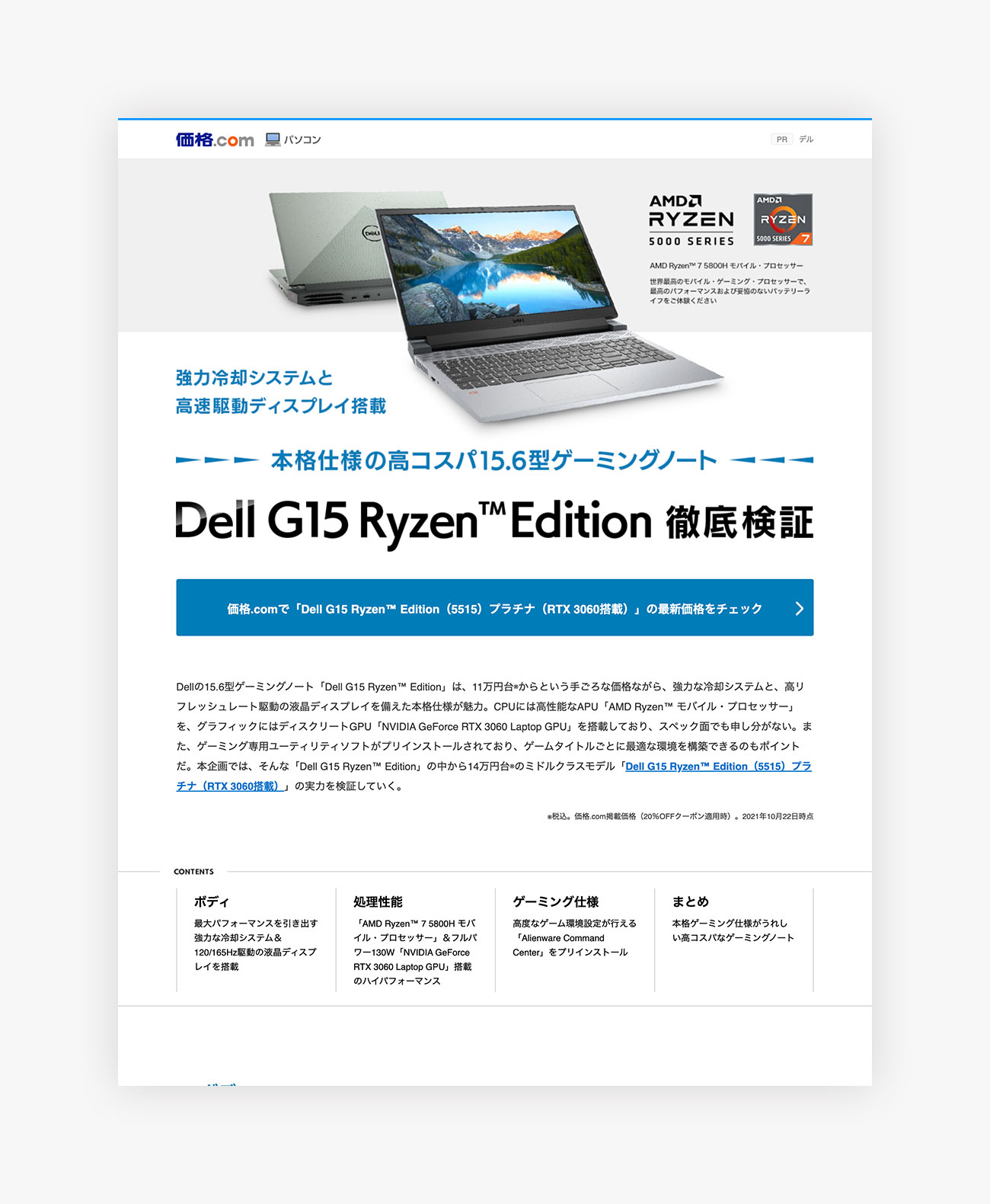 「Dell G15 Ryzen Edition」徹底検証 高コスパ・ゲーミングノート 投稿日 2021年10月22日 更新日 2023年7月5日 著者 Linkup 制作実績カテゴリー WEB 価格.com PR企画 2021年10月22日公開 カテゴリー:WEB 構成案, 執筆協力, モデル 掲載ページ シェア 投稿