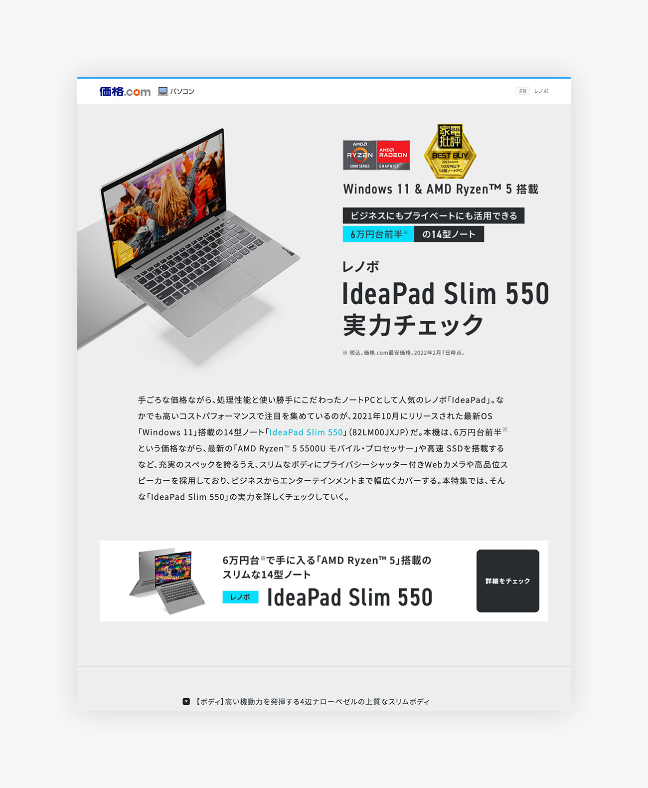 4. 高コスパ14型ノート レノボ「IdeaPad Slim 550」実力チェック